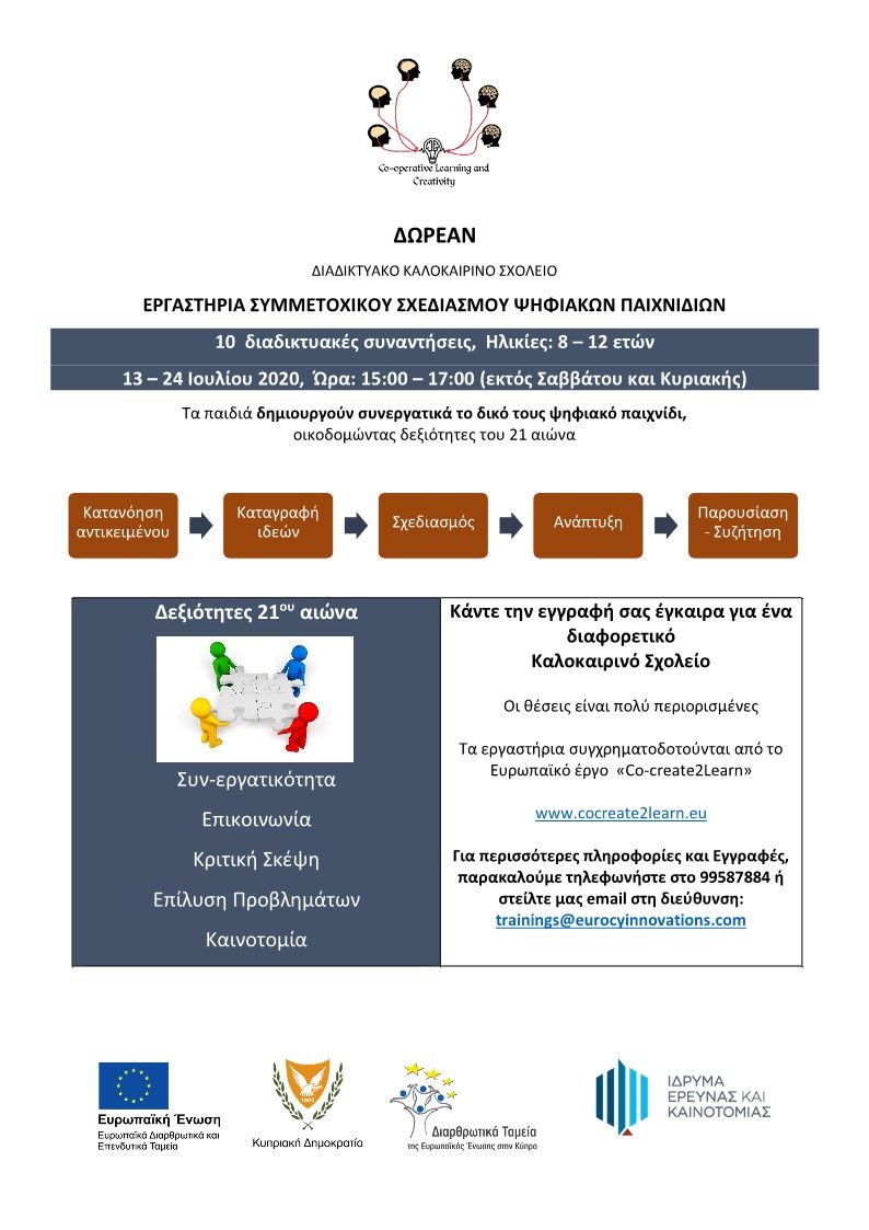 As part of our project, we are pleased to announce the launch of a free online summer school, for children aged 8 to 12, from 13 to 24 of July 2020 (15:00-17:00, except Saturday and Sunday).